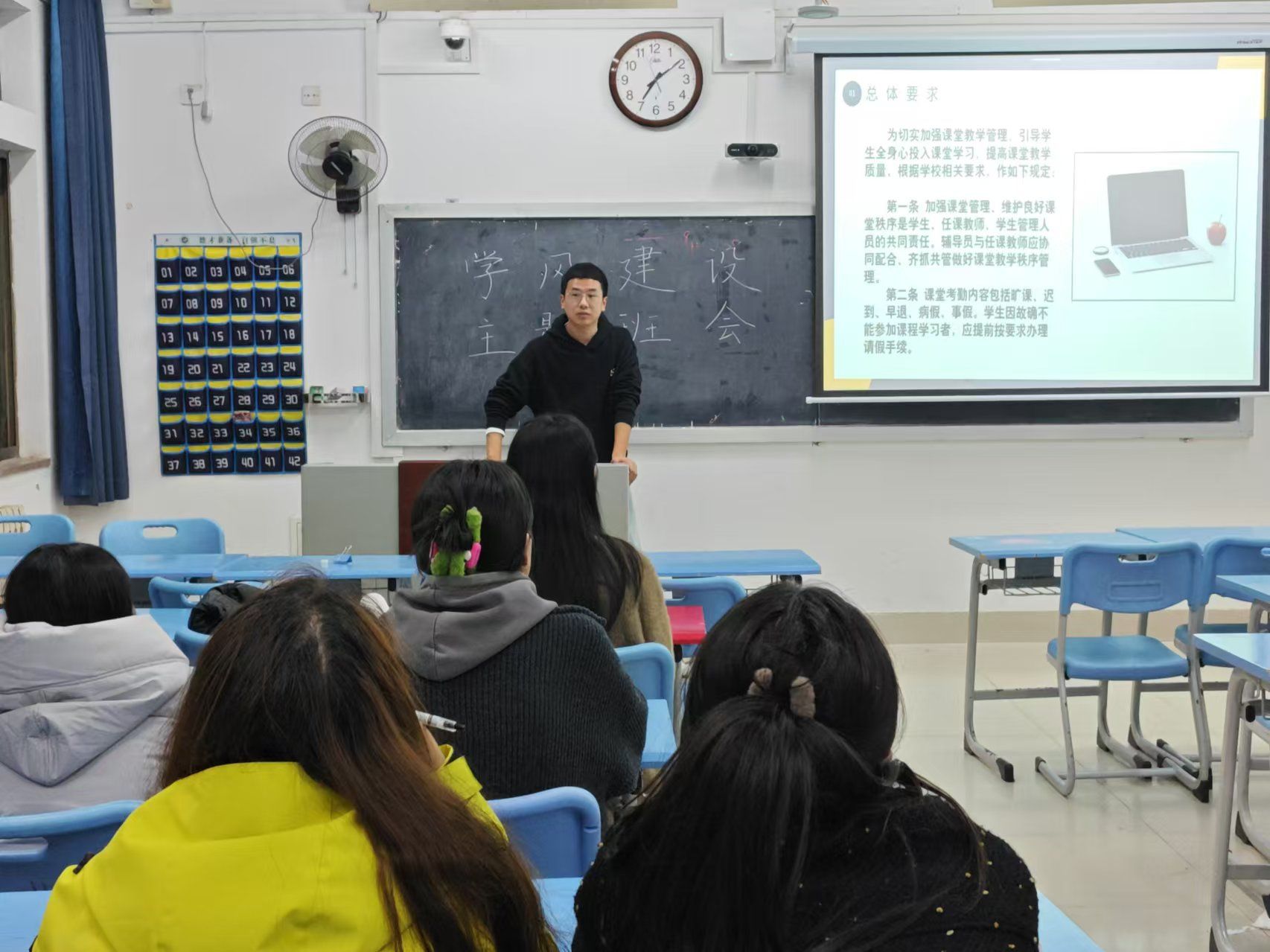会上,李政亮强调了学风建设的重要性,指出优良学风是校园文化的核心组成部分,是学生学习态度、学习风气的集中体现,直接关系到学生的成长成才与班级的整体氛围。此外,李政亮还针对晚自习纪律、课堂秩序等方面的情况,提出了明确的纪律要求,督促学生养成良好的学习习惯。与会学生纷纷表示要严格遵守课堂教学行为规范,明确个人发展目标,努力为学院学风建设贡献自己的力量。