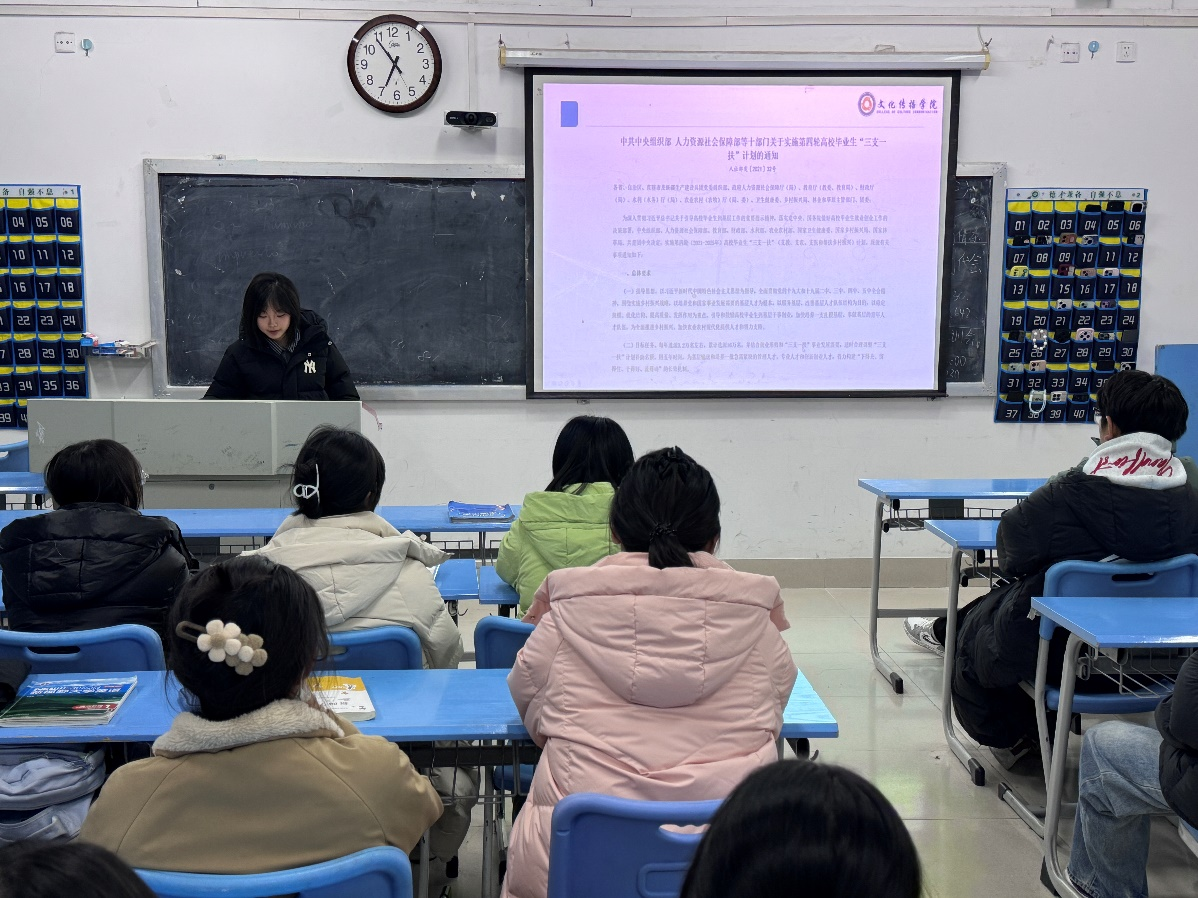 为助力学生系统了解选调生和三支一扶的基层项目就业政策,激发其投身国家建设的热情和动力。文化传播学院于12月10日面向2024级新生开展选调生、三支一扶政策宣讲活动。