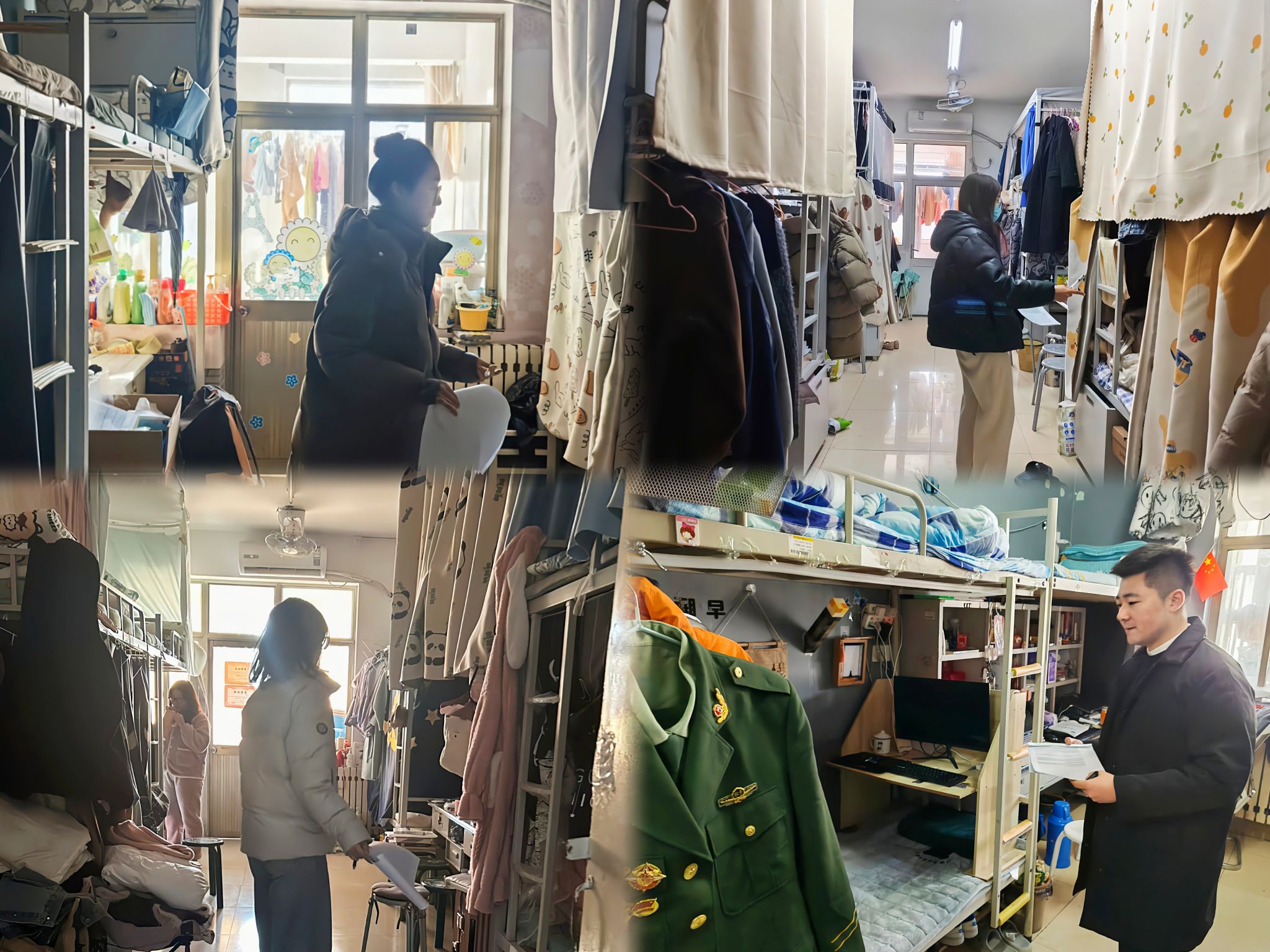 各辅导员走进学生宿舍,深入了解学生生活环境,检查各项宿舍安全问题。活动过程中,辅导员老师和志愿者共同就宿舍内是否有私自接拉电线行为、宿舍内是否存在人走不断电现象、宿舍卫生是否整洁等问题逐一检查,对出现的相关问题进行记录并提醒相关学生进行整改。同时各辅导员认真检查学生宿舍的基础设施老化、破损问题,确保学生住宿安全。