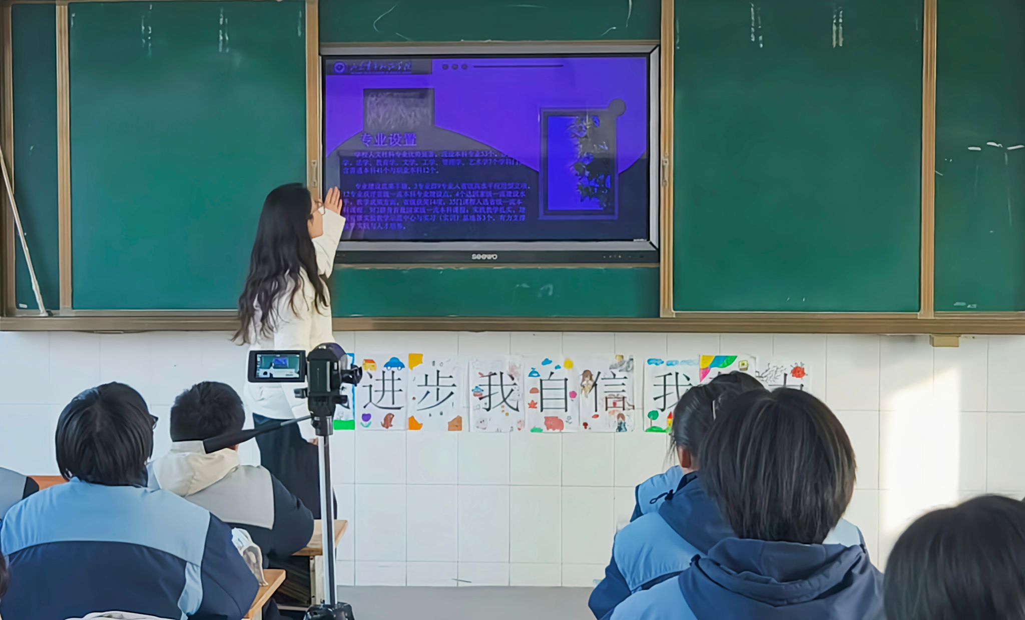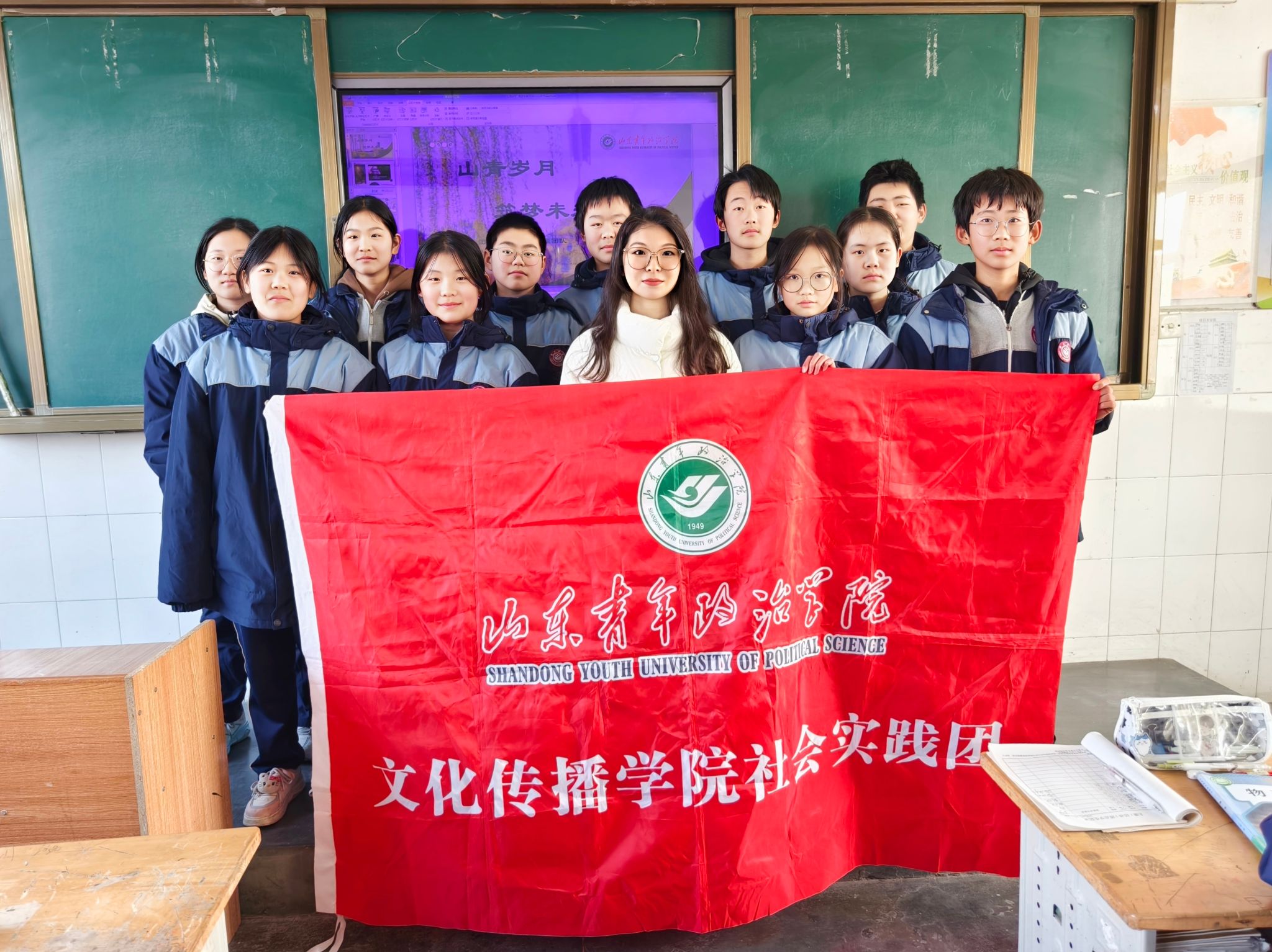 此次重返校园不仅是简单的故地重游,更是一次意义非凡的文化传递与精神传承之旅。团队成员首先来到教师办公室,以一场庄重而温馨的汇报,向教师们讲述了在山东青年政治学院的求学道路,并分享了在课程学习、实习实践中的个人经历,畅谈如何在各式各样的社团活动中锻炼自我,实现个人兴趣的充分满足。随后,团队成员以课堂宣讲的形式,向母校学弟学妹们全方位展示了山东青年政治学院的校园概况、专业设置、师资力量与悠久历史文化等方面内容,分享了大学学业成果与生活,吸引更多优秀学子报考,为学校注入新的活力。