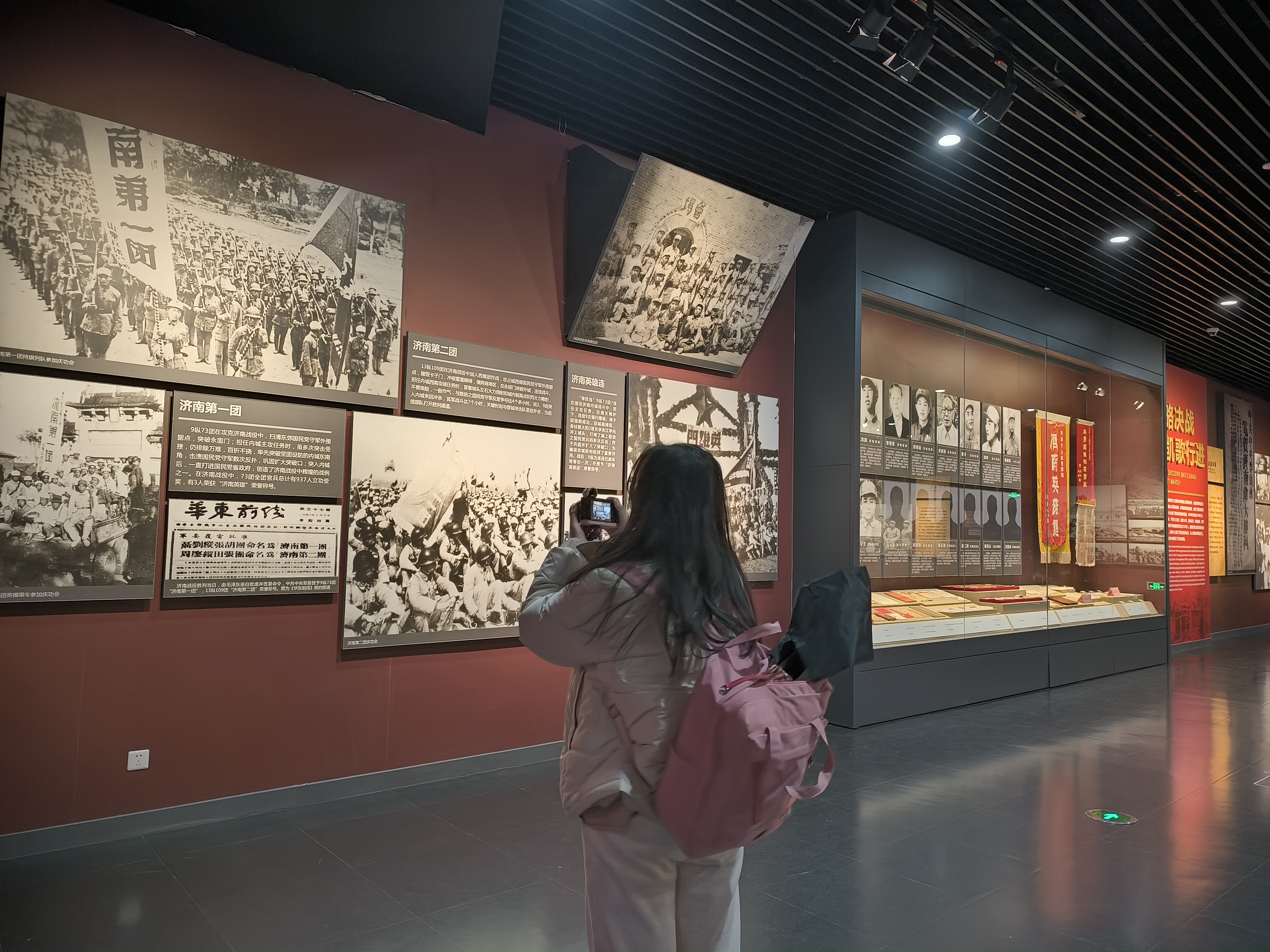 纪念馆内,历史的气息扑面而来,珍贵的历史文物、详尽的展板以及声、光、电、影等多媒体手段生动再现了济南战役的激烈战斗场景。李晓奇认真观看馆内历史文物,深入了解了济南战役的历史背景、战斗过程以及革命先烈们的英勇事迹。济南战役纪念馆中,各展厅分别展示了军事指挥、战前准备、八天八夜的激烈战斗及战略决战胜利等内容。这些展厅犹如连接历史的通道,参观者置身其中,能直观了解济南战役的全过程,感受革命先烈在战争中坚定的信念和不屈精神。