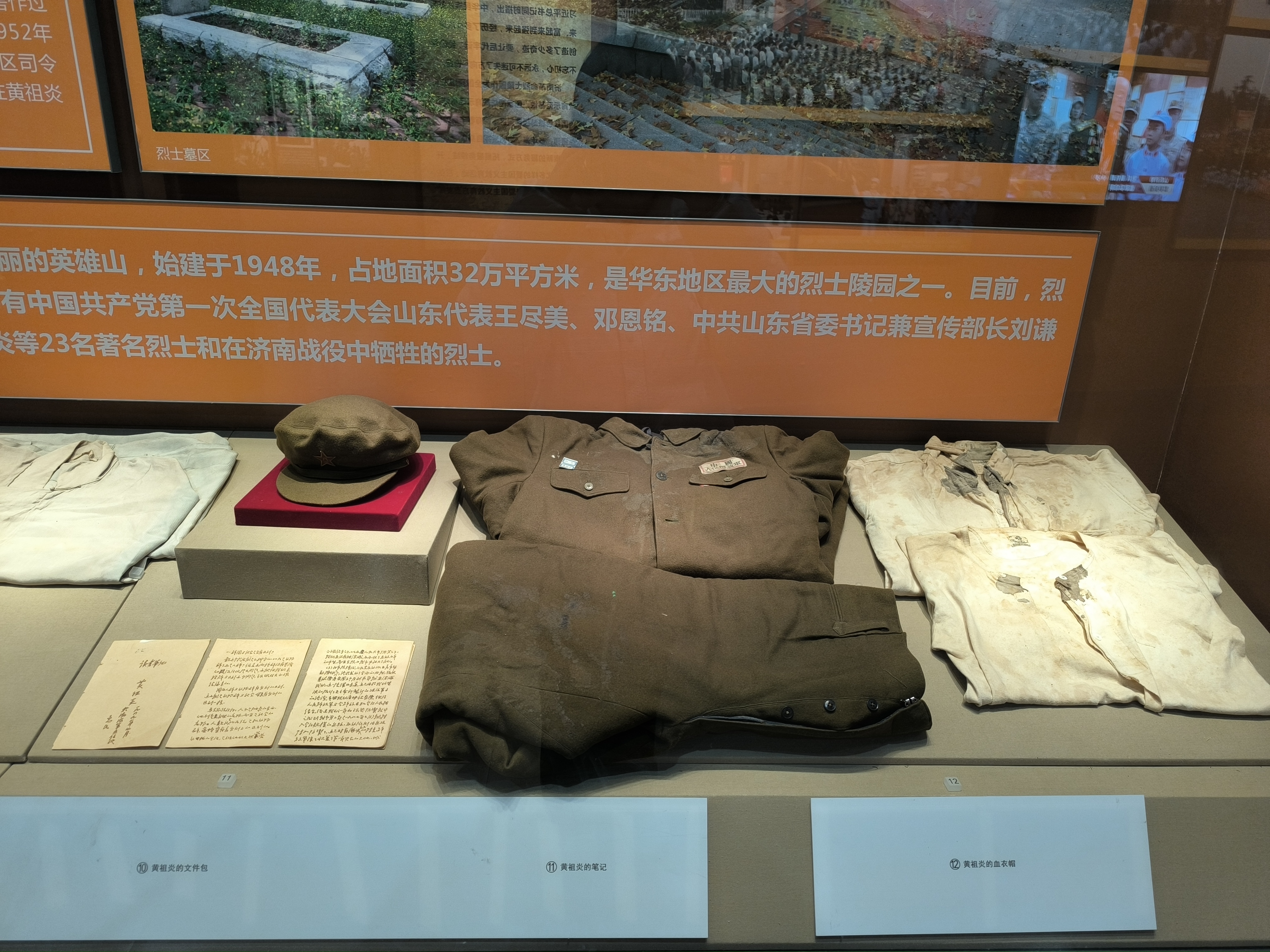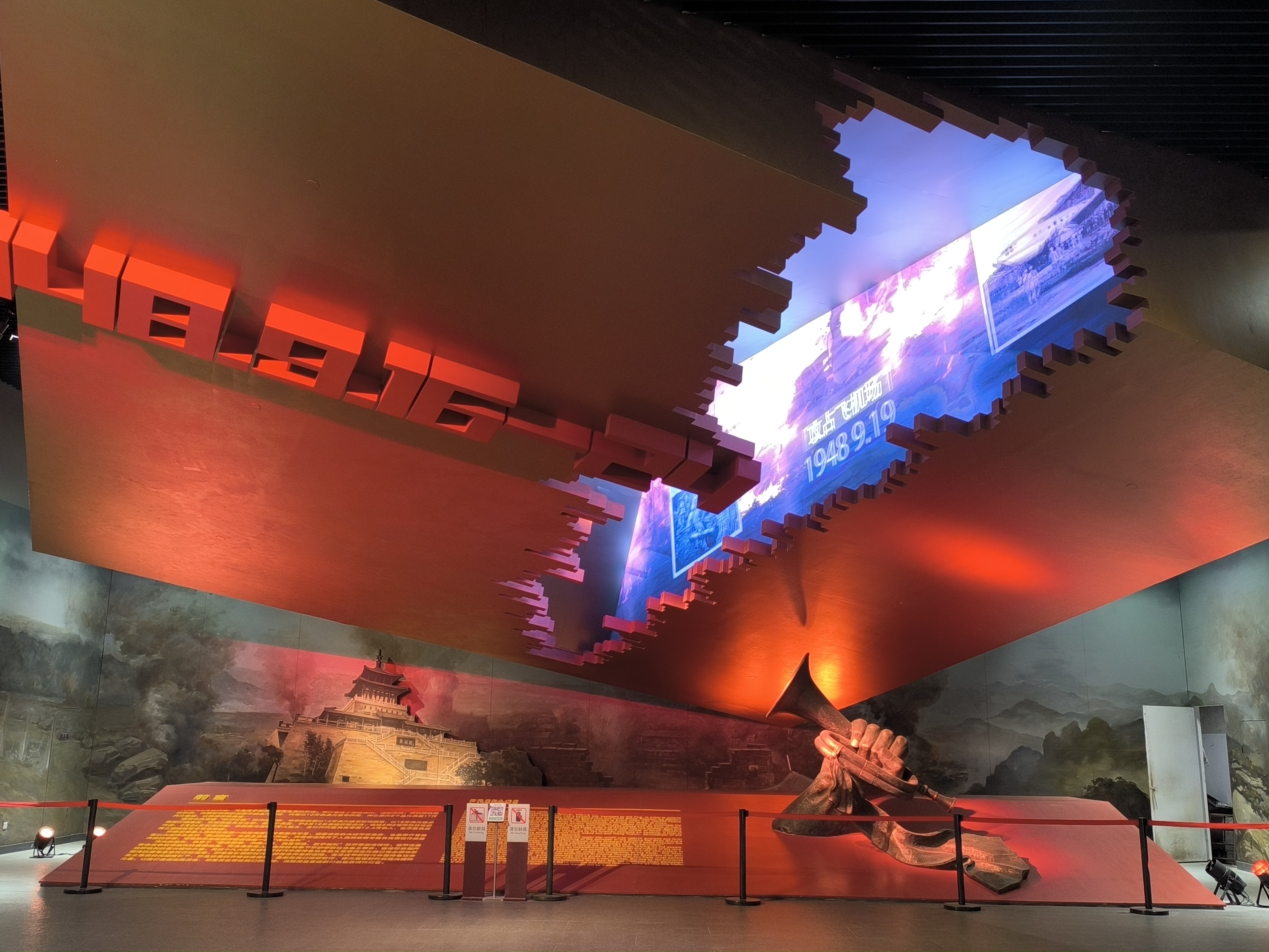济南战役纪念馆位于济南英雄山脚下,始建于1998年,于2003年正式建立使用,每年接收社会群众30余万人,是全国爱国主义教育示范基地,更是传承革命精神的不朽丰碑。迈入纪念馆的大门,首先映入眼帘的是展馆大厅上方的红色方体,以及展示着中央红色背景下的军号,在墙壁四周的济南战役英雄群像雕塑,再现了战士们英勇无畏、冲锋陷阵的壮烈场景。怀着沉重的心情,实践成员依次参观了各个展厅,和陈列的每一件珍贵文物。书信上的字迹依然清晰,透露出的是革命者坚定的信念和对未来的憧憬;那陈旧的武器仿佛残留着战士们战斗的余温。