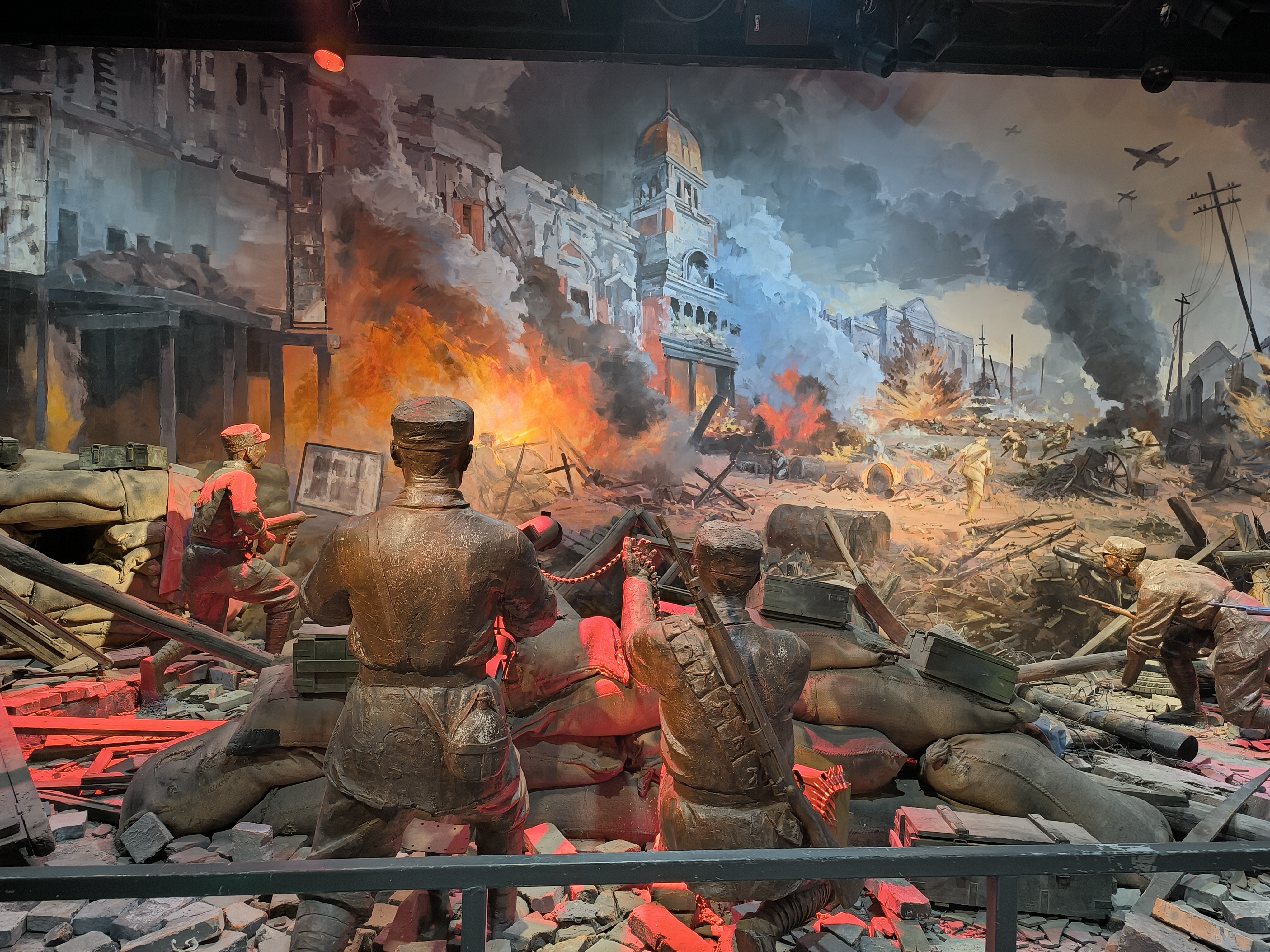 在场馆二楼,一组立体战士铜雕战火图展现在参观者眼前,逼真的战斗模拟场景让实践成员深深感受到了济南战役的激烈与残酷;“爱党爱军,依靠人民,英勇顽强,敢于胜利”的济南战役精神出现在视野之中,这一精神都反映了济南战役战士们的奋勇向前最终取得胜利的必然。最后,实践成员来到刻满烈士名字的大厅,观看烈士名人录,在心中默默哀悼。