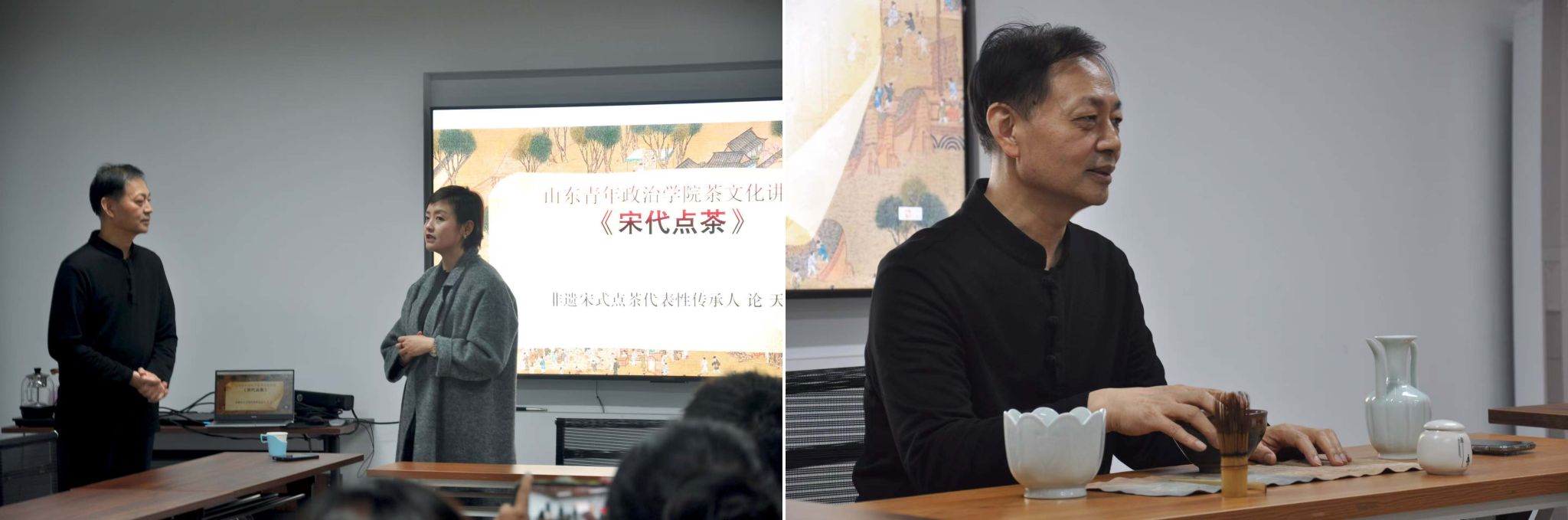 为加深公众对宋代点茶这一非物质文化遗产的了解,推动传统文化的传承与发展,薪火志愿宣讲团在寒假期间前往济南市宋代点茶进行社会实践。1月25日,团队成员拜访茶室,与著名非遗传承人论天学习茶文化。