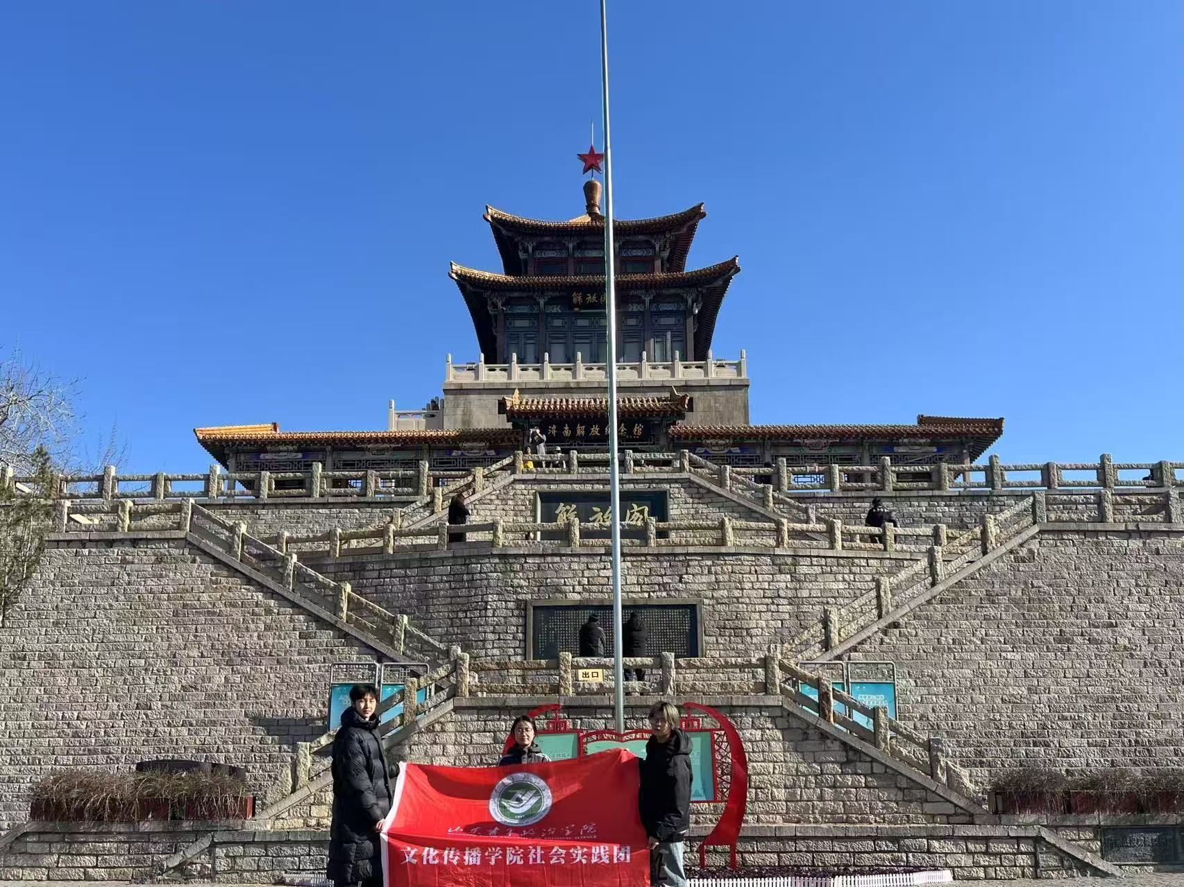 红色基因,薪火相传。学院积极引导师生厚植爱党爱国深层力量,自觉赓续红色血脉,传承时代基因。“星火燎原”社会实践团队深入济南市环城公园、解放阁、济南解放纪念馆以及中共山东早期历史纪念馆,围绕“新媒体赋能济南红色文化创新传播与传承路径探索”展开实地调研,在新时代背景下挖掘红色文化传播的新契机。“探忆·寻迹”社会实践团队走进南京渡江胜利纪念馆,以文化传播专业技术助力红色文化新发展,以青年口吻讲好中国故事,深入推进社会实践这一“大思政课”建设。
