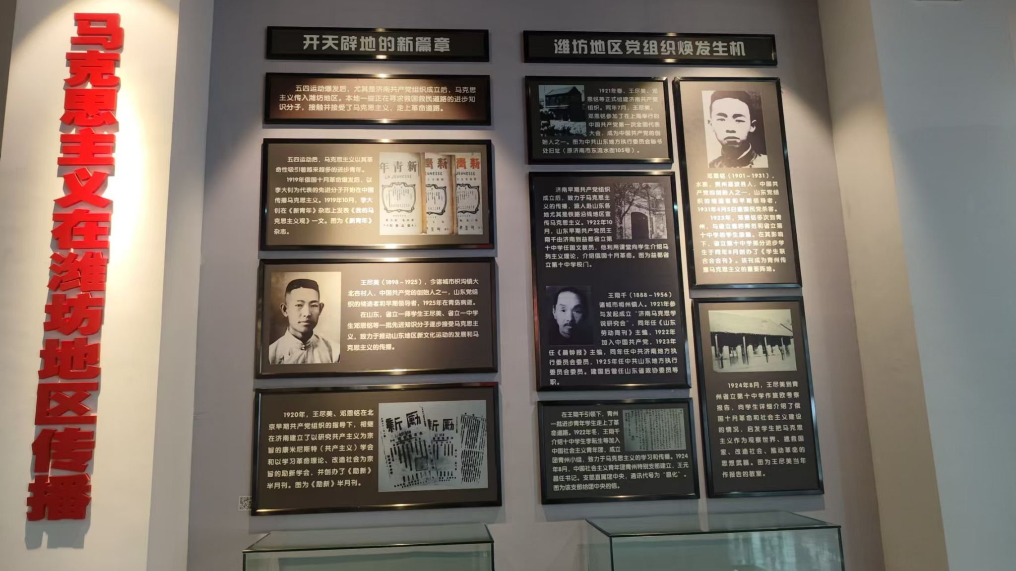 王尽美,1898年出生于潍坊诸城。早年他考入山东省立第一师范学校,积极投身“五四运动”,成为学生运动的骨干。他与邓恩铭等人发起成立“励新学会”,传播新思想、新文化,为山东的革命事业播下了希望的种子。1921年春,王尽美与邓恩铭创建了济南共产党早期组织,同年7月,他作为山东代表,出席了中国共产党第一次全国代表大会,在党的创建史上留下了浓墨重彩的一笔。