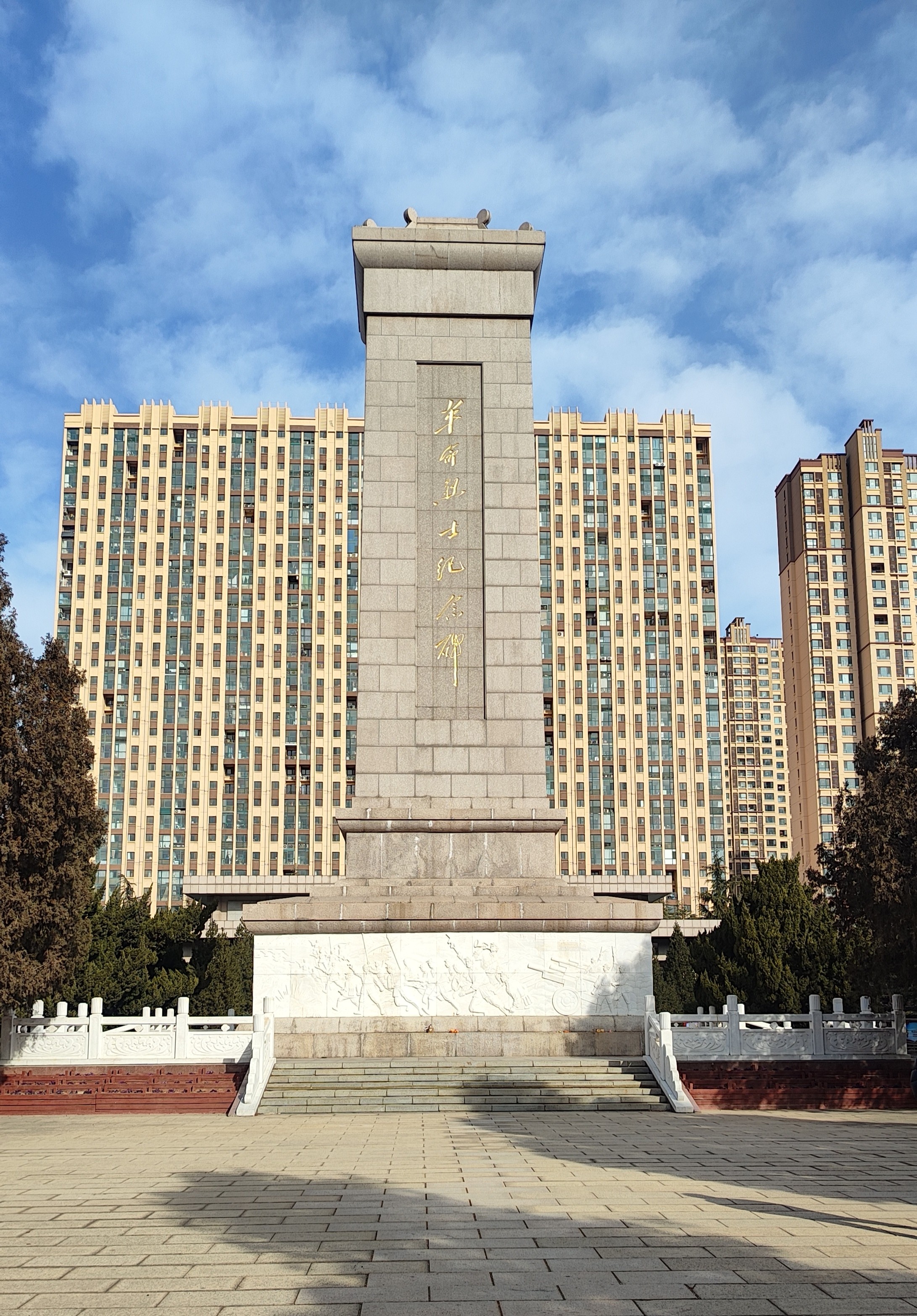 踏入烈士陵园,庄严肃穆之感扑面而来。园区内,松柏常青,似是忠诚的卫士,又仿若先烈英魂的化身,岁岁年年守护着这片圣地。沿着整洁的通道前行,首先映入眼帘的是雄伟的纪念碑,碑身挺拔高耸,直入云霄,镌刻着的铭文在阳光映照下熠熠生辉,简短有力的文字浓缩了潍坊那段波澜壮阔、可歌可泣的革命历程,诉说着无数英雄儿女为家国抛头颅、洒热血的壮志豪情。