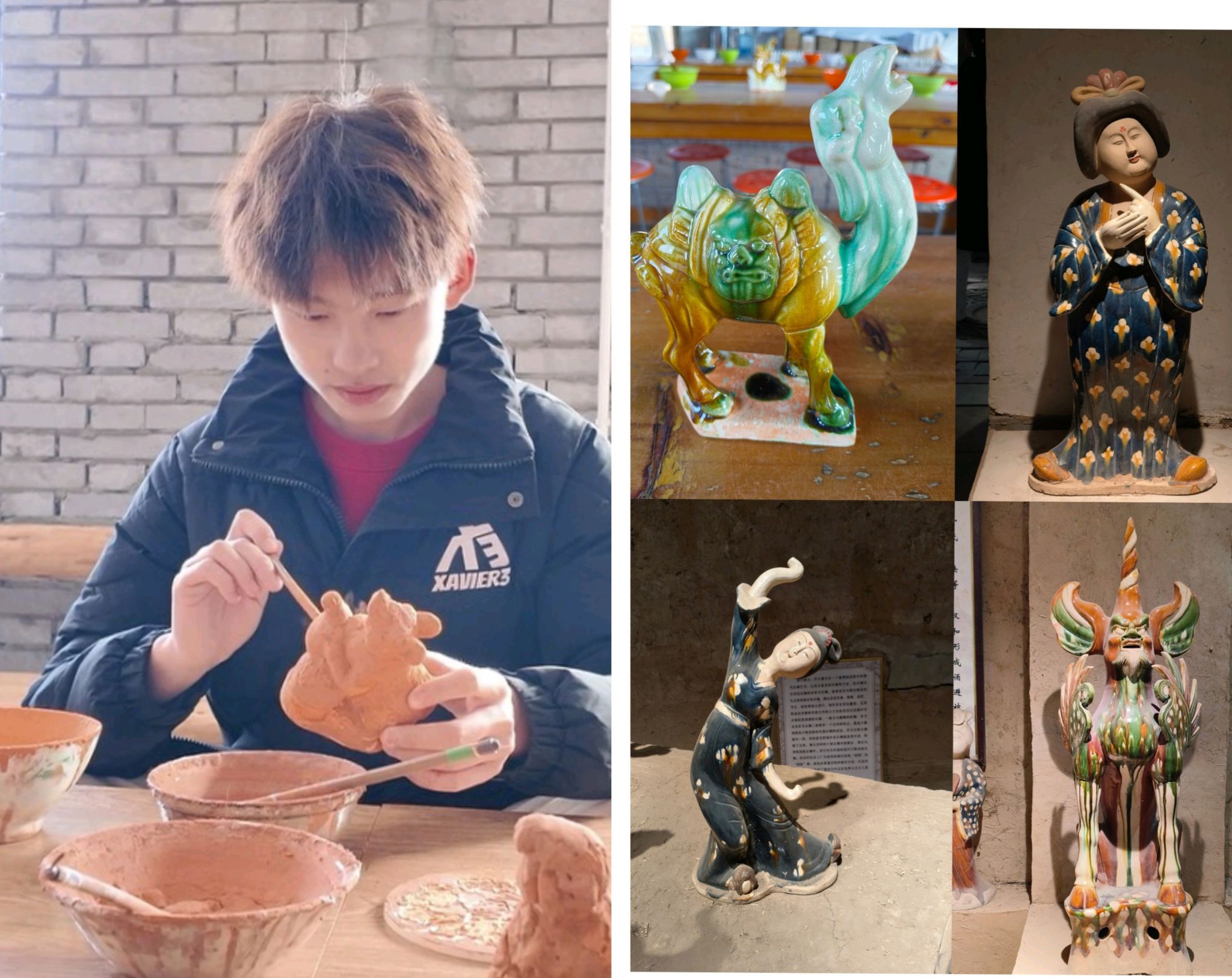 2月16日,团队到达南石山三彩小镇、中国唐三彩文化园开展实地考察。团队对“高家三彩”第六代传承人高哲、中国唐三彩文化园建立者张二孬、唐三彩博物馆讲解员及南石山村村书记进行采访,并实地考察体验了唐三彩的制作流程及工艺。高哲表示其父亲高水旺作为唯一的国家级非遗传承人,利用10年时间,全面挖掘恢复了唐三彩传统制作技艺,开辟了一条保护、传承、发展的产业化实践之路,通过精湛的陶瓷技艺,传承了中国陶瓷文化,并赢得了国际声誉,为中国传统工艺注入了新的生命力,带动了中华非遗文化的创新发展。