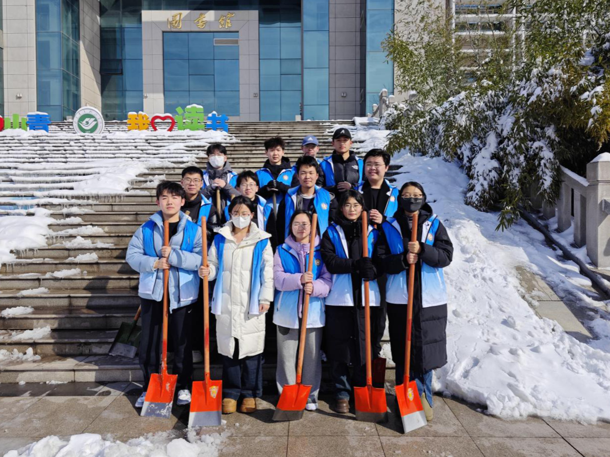 上午8时30分,党员先锋率先在图书馆前集结,30名志愿者分为两个小组,科学划分重点清理模块,重点针对建筑物台阶、人行通道及主干道等关键区域进行清扫。志愿者们身着统一制式背心,手握除雪铲、防滑垫等专业工具有序作业。