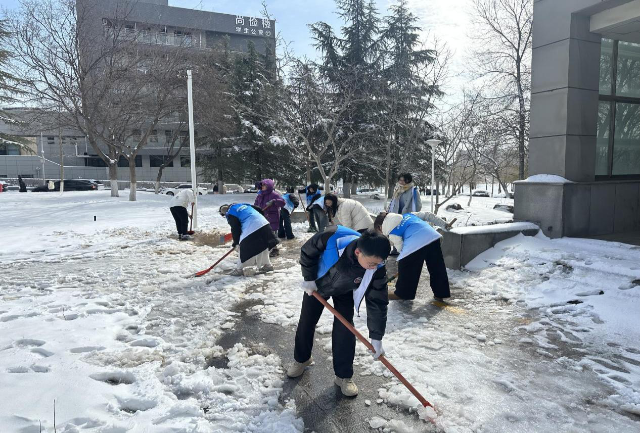 三月乍暖还寒,一场春雪悄然降临。3月2日,一场暴雪覆盖了整个校园。为应对校园积雪带来的安全隐患,保障校园道路畅通,方便师生出行,3月3日,文化传播学院32名学生党员牵头组成先锋队,联合学生会、青年志愿者协会等组织,在图书馆核心区域开展“学雷锋·春风行动”清雪志愿服务。