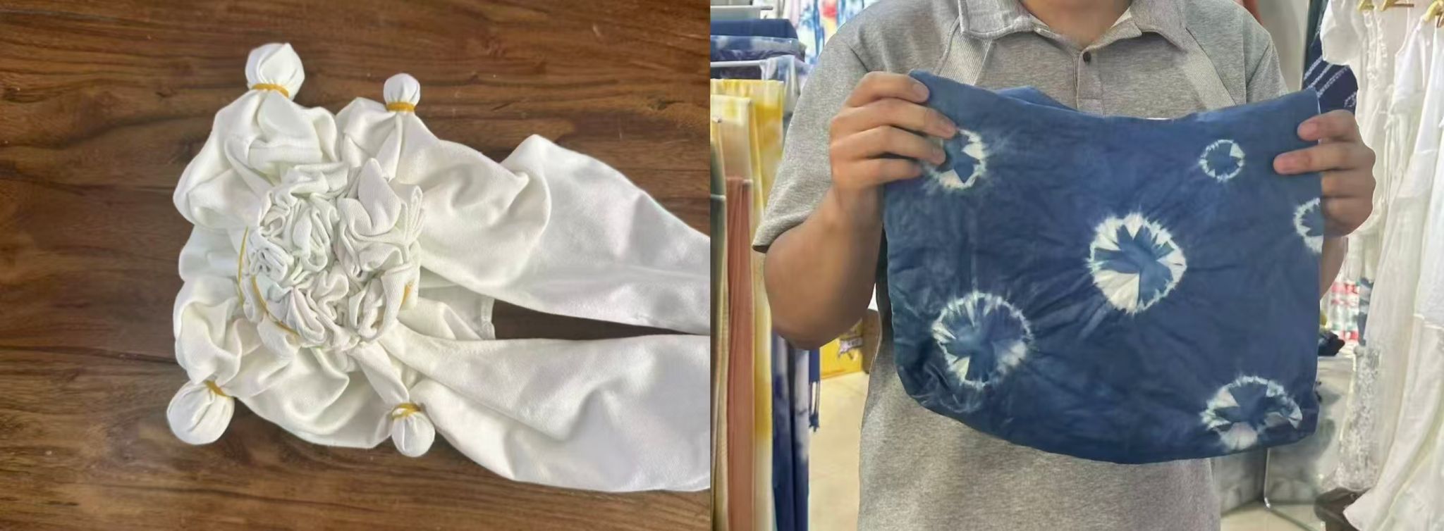 在本次社会实践中,团队成员系统了解泉水扎染的起源、发展脉络与完整制作流程,并在亲手参与制作的过程中,真切体会泉水扎染非遗技艺的独特价值。通过采访,团队发现济南扎染的特色核心在于泉水与染料的巧妙结合,这构成了济南扎染区别于其他地区扎染的独特之处。济南泉水富含多种天然矿物质,与当地特有的植物染料相遇时,能产生特殊的化学反应,不仅让染料的着色力大幅提升,使染出的图案边缘更清晰、层次更分明,还能让色彩在时光流转中更显沉稳雅致,历经多次洗涤依然保持较好的色泽度。而以当地天然植物为原料制成的染料,本身就带着自然的芬芳,经泉水浸润后,更添一份独特的韵味。这种“泉养染、染映泉”的互动关系,是济南扎染在长期发展中形成的独家技艺,既融入了当地的自然禀赋,又凝聚了代代手艺人的智慧,成为这门非遗技艺不可复制的鲜明标识。