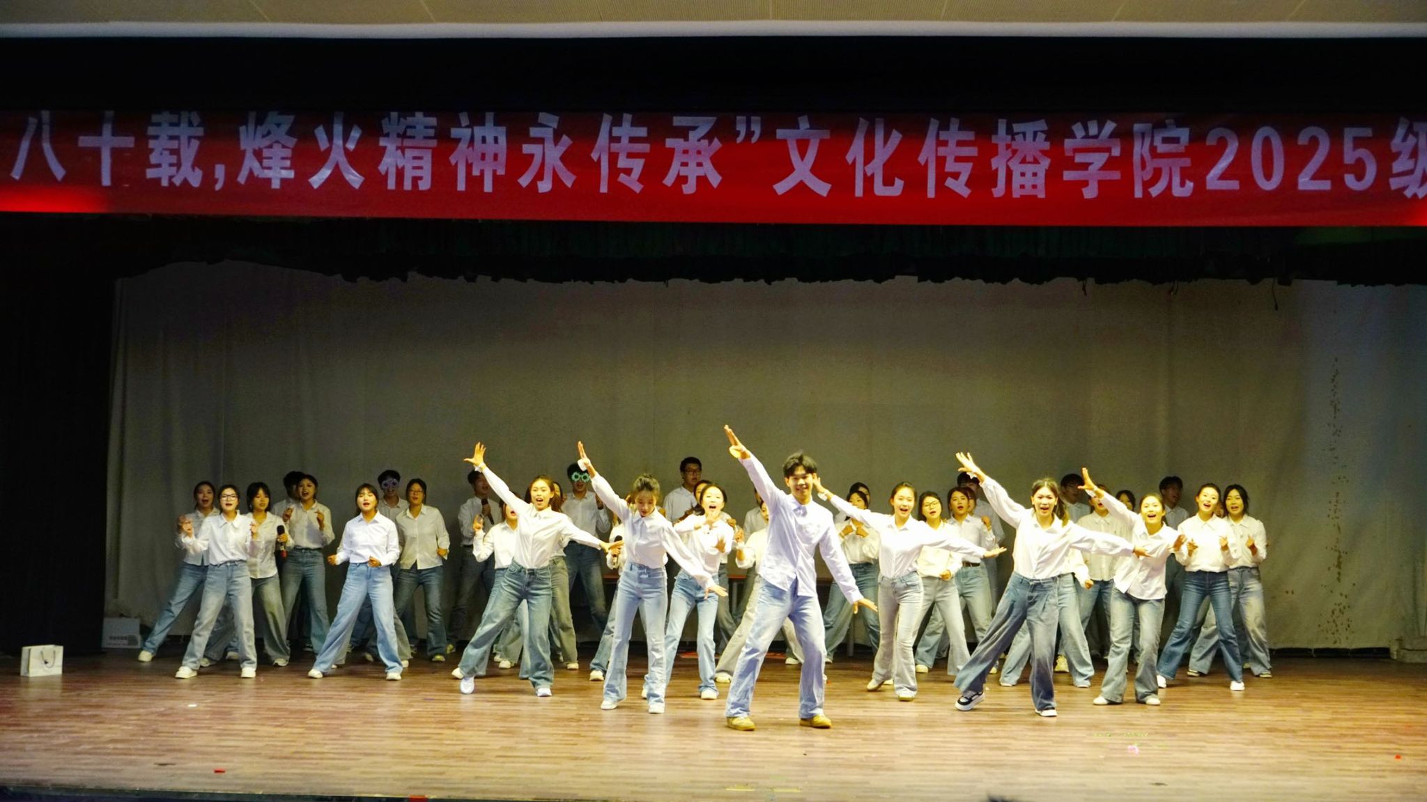 为厚植爱国情怀、凝聚班级力量,展现我院新生昂扬向上的精神风貌,10月21日晚,文化传播学院举办“山河铭记八十载,烽火精神永传承”2025级新生班级风采展,学院全体辅导员、新生班主任参与活动,与全体新生一同重温红色经典,传承革命精神。