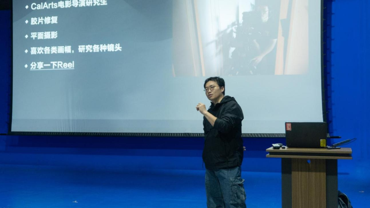 上午的理论教学中,吴一开从多维度解析了影视灯光的核心知识。技术层面,他讲解了专业控光软件与主流灯具的功能、参数及操作逻辑;原理层面,阐释了灯光的光学特性,结合控光器材与光线方向的应用,分析其对画面层次与视觉焦点的塑造作用。吴一开还通过现场拉片教学,引导学生从光的质感与叙事逻辑角度解读灯光设计,并介绍了常用灯具的特点及实用技巧。