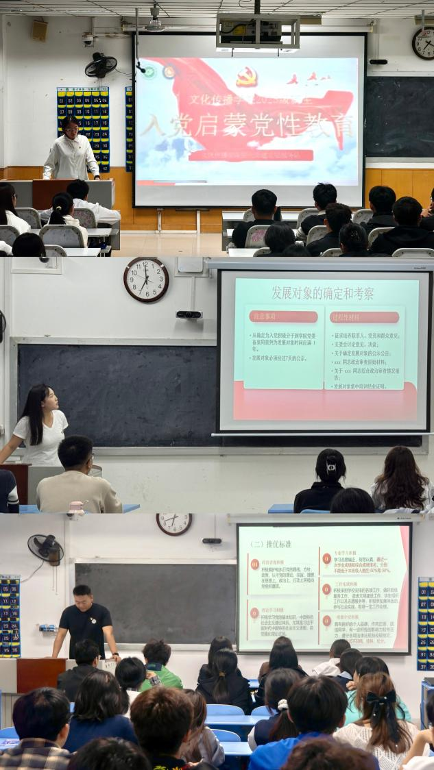 为进一步强化新生思想政治引领,引导青年学子主动向党组织靠拢,厚植爱国爱党情怀,文化传播学院党委面向2025级新生统筹开展新生入党启蒙教育系列活动,借助理论宣讲、榜样分享、实践创作等多元形式,为新生扣好大学生涯的“思想第一粒扣子”。
