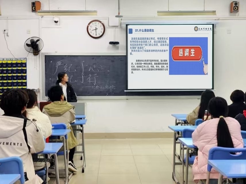 为精准赋能青年成长,帮助学生们系统掌握选调生报名招录的各项具体要求,吸引更多优秀学子投身基层建设,文化传播学院于11月14日面向2025级新生开展选调生报名招录条件宣讲活动。