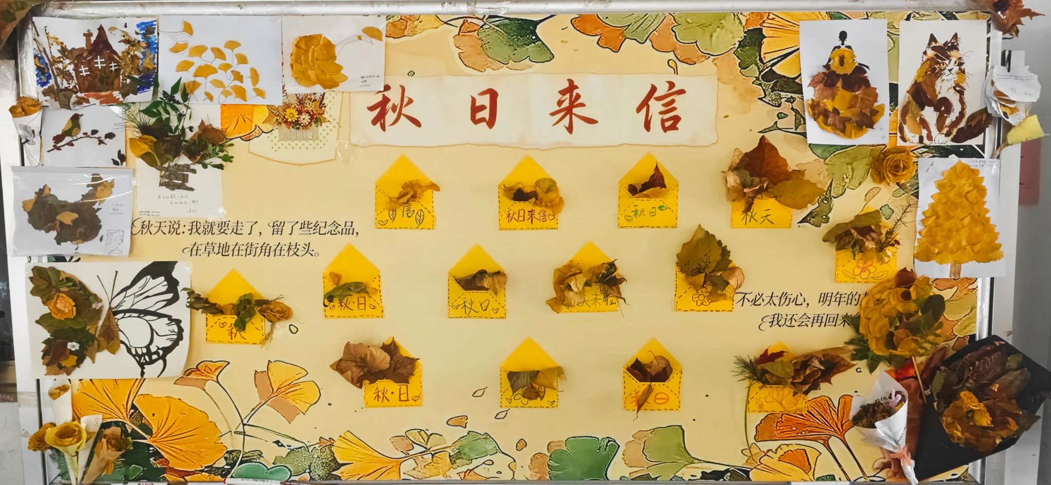 现场的互动展板上,一个个别致的“信封”成为秋意的容器。学生们发挥奇思妙想,将落叶精心排布、巧妙粘贴,或勾勒秋景轮廓,或拼接创意图案,再附上写满期许的便利贴,让每一封“秋日来信”都兼具美感与温度,勾勒出人与自然和谐共生的美好图景。