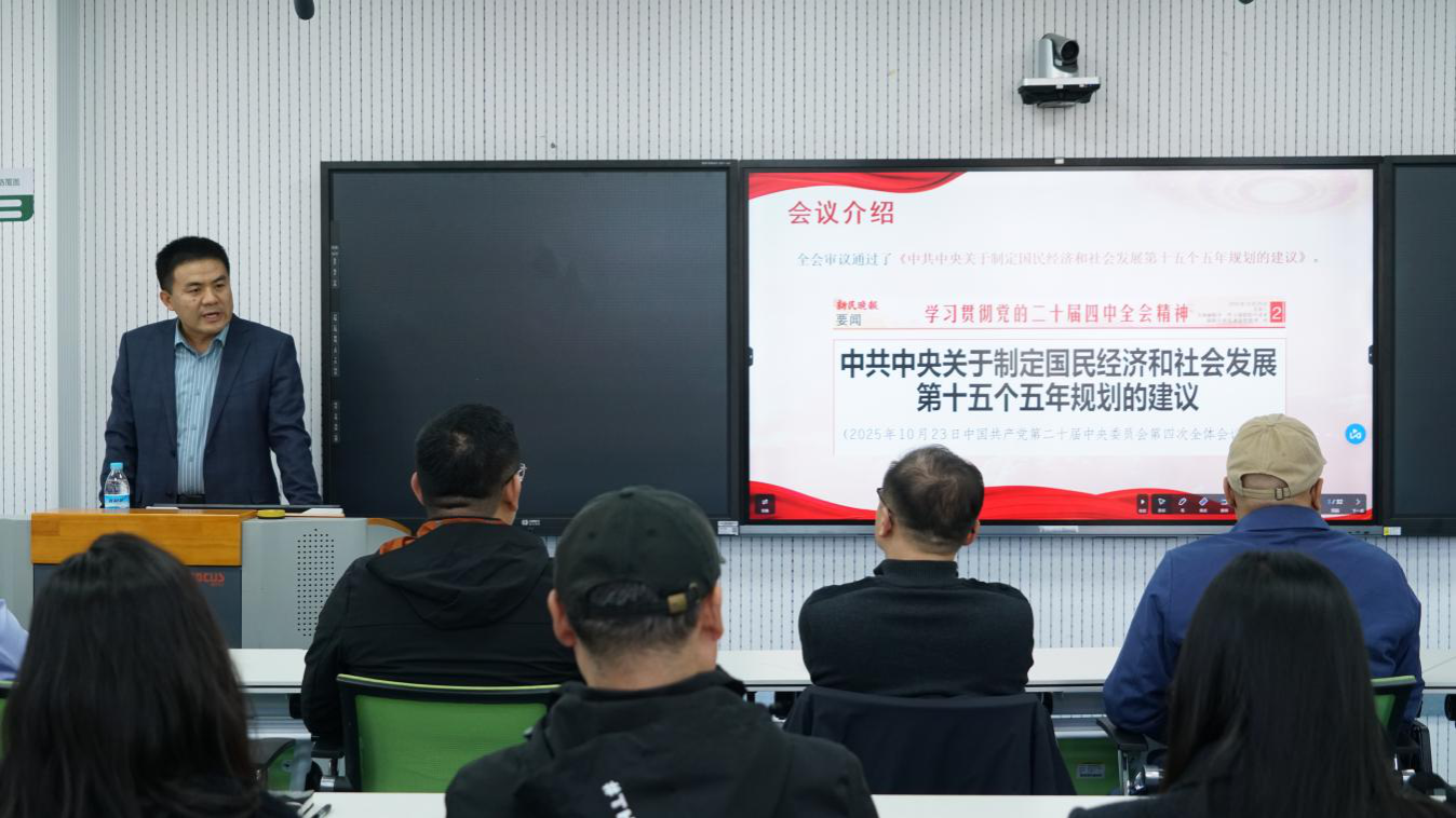 会上,陈龙溪围绕全会召开的时代背景、核心要义与实践要求三个维度展开系统解读。结合高等教育职能定位,他重点阐释了“十五五”时期的指导思想、6个坚持的基本原则和7大发展目标。其指出,全会提出的科技自立自强、文化强国建设等重点任务,与高校人才培养、科研创新、社会服务等职责高度契合,尤其为人文社科类专业在新文科建设、数字文化研究等领域提供了行动指南。