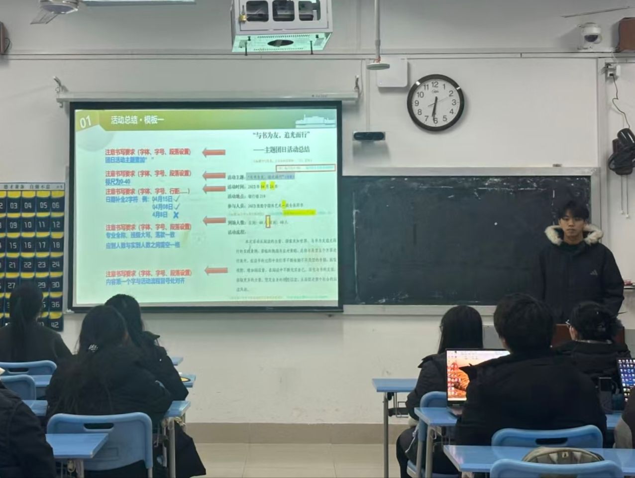 培训会上,周鑫以主题团日优秀案例为切入点,重点解读团日活动材料格式规范核心要点。针对“智慧团建”系统实操应用,他结合界面截图分步演示操作流程,详细指导新生团支书完成从平台登录、对应板块进入,到活动信息填报、专题匹配关联及提交审核的全流程操作,并明确信息录入时效要求与错误修正规范,精准解答实操过程中的常见疑难问题。此外,培训还围绕团务工作实务核心要点展开系统分享,为基层团组织规范有序开展工作筑牢基础。