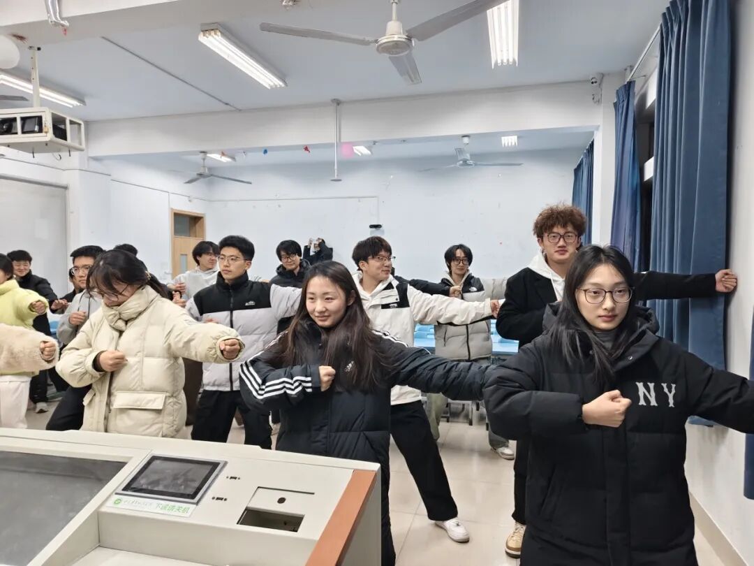 每周二、周四早自习利用教室大屏幕循环播放健身气功八段锦教学视频,学生们现场跟做练习,进行自主学习和跟练。“左右分掌拨云式,双手捧抱式还原……”学生们精神抖擞,在悠扬的音乐声中,他们缓缓起势,抬手、下腰、提踵、左右开弓,一招一式,刚柔并济,既展示了八段锦柔中带刚、动静相兼的特点,又体现出学生们朝气蓬勃、阳光健康的精神面貌。学生们神情专注,动作舒展,体验着这一古老养生功法带来的身心宁静。纪律检查部学生提前调试设备、维护现场秩序,为活动顺利开展保驾护航。不少学生反馈,练习后身体舒展、精神更易集中。