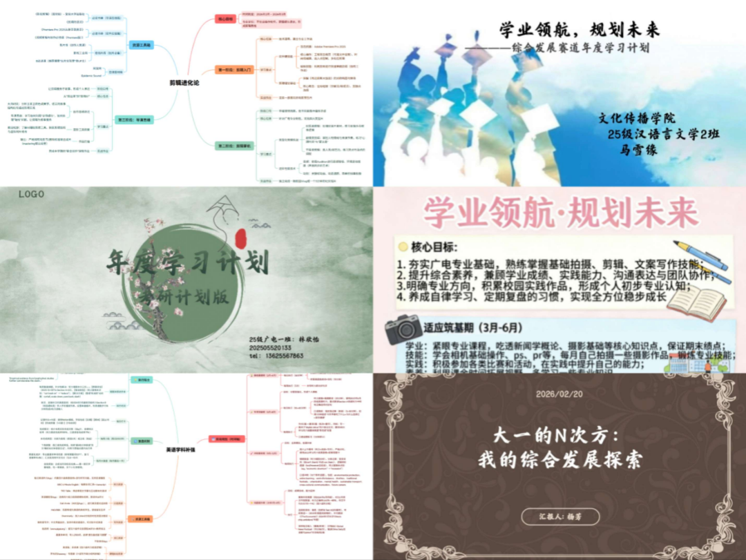 为引导学院学生科学规划假期与新学年的学习生活,明确个人发展路径,文化传播学院在2月15日-20日面向全院学生开展了“学业领航,规划未来”制定2026年度学习计划活动。活动中,学院学生立足自身专业特色与成长需求,围绕多维度制定兼具可行性与前瞻性的年度学习规划,在主动规划中锤炼本领、积蓄力量,展现新时代青年学子奋发有为的精神风貌。此次活动让同学们以清晰目标锚定前行方向,以科学安排提升学习效能,不仅为我院学子搭建了展示自我、切磋交流的平台,更对学院学风建设与文化育人的深度融合具有重要意义。