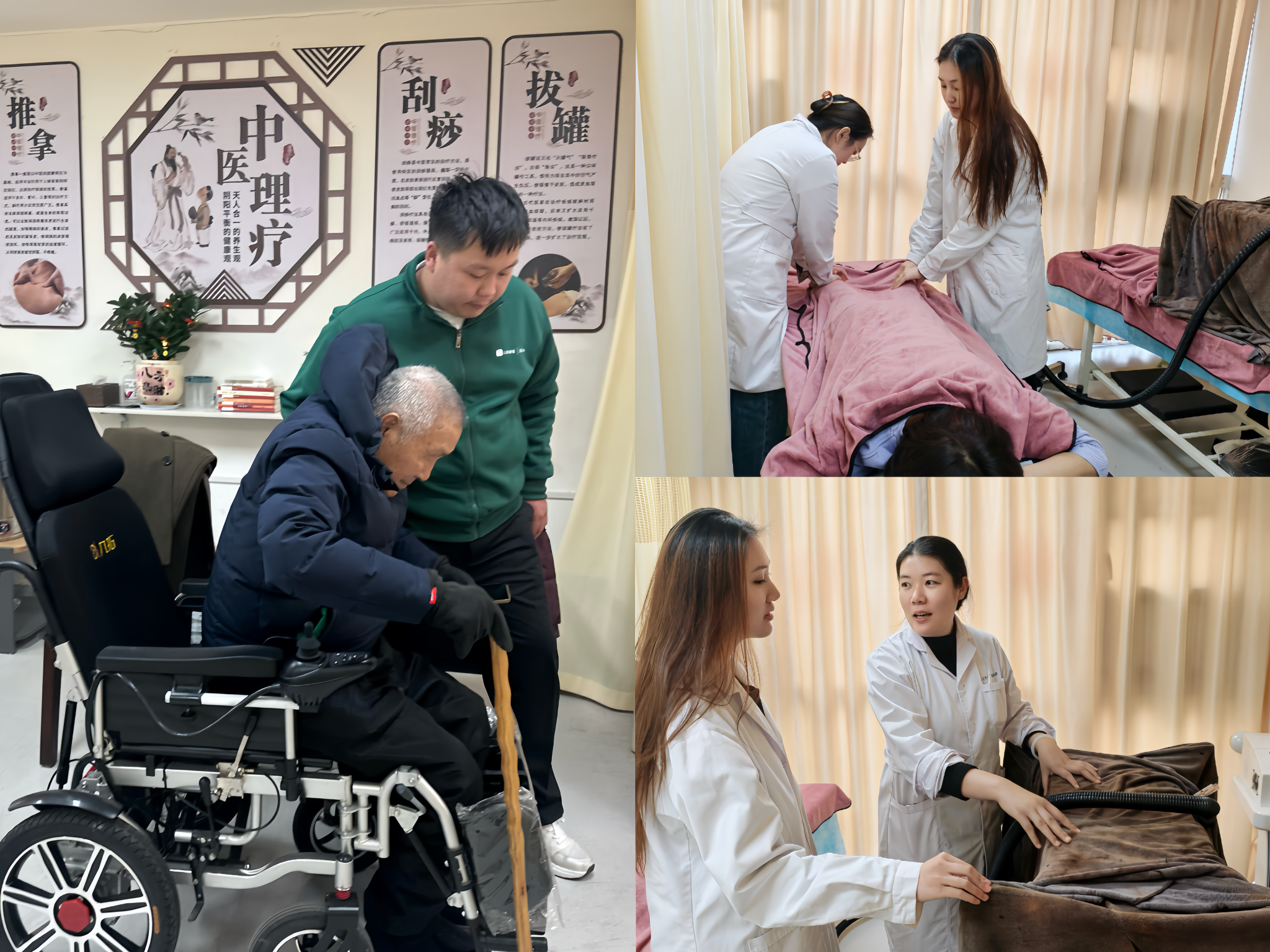 此外,为更好地缓解老年人群体常见的肩颈酸痛、腰背僵硬等身体不适,实践团成员主动向养老院专业护理老师请教学习。在实操过程中,成员们秉持耐心与细心,用轻柔规范的手法为老人按摩舒缓,时刻关注老人的身体感受,一边按摩一边与老人唠家常,倾听他们的过往经历与生活趣事,用陪伴与关怀抚慰老人的心灵,让老人们在身体放松的同时,感受到满满的温情与关爱。