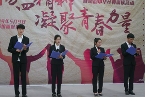 “五四,永远的五四!中国,永远的中国!”舞蹈学院四名学生带来《五四铭诗》,用激昂的声音将在场师生带回百年前历史时空;我院学生深情演绎的《倾听青山绿水的诉说》、《与妻书》、《我爱你,中国》三个篇章,将五四精神与新时期时代精神相结合,悠扬婉转间高诵赞歌;信息工程学院学生朗诵的《祖国,用青春的名义为你歌唱》和现代服务管理学院学生朗诵的《青春中国》,展现了当代青年的传承与担当;经济管理学院学生朗诵《我的南方和北方》、会计学院学生朗诵《我的祖国》和政治与公共管理学院学生朗诵《祖国我爱你》,用平实言语和朴实情感,温软低回,诉说着对祖国母亲的无限敬爱。