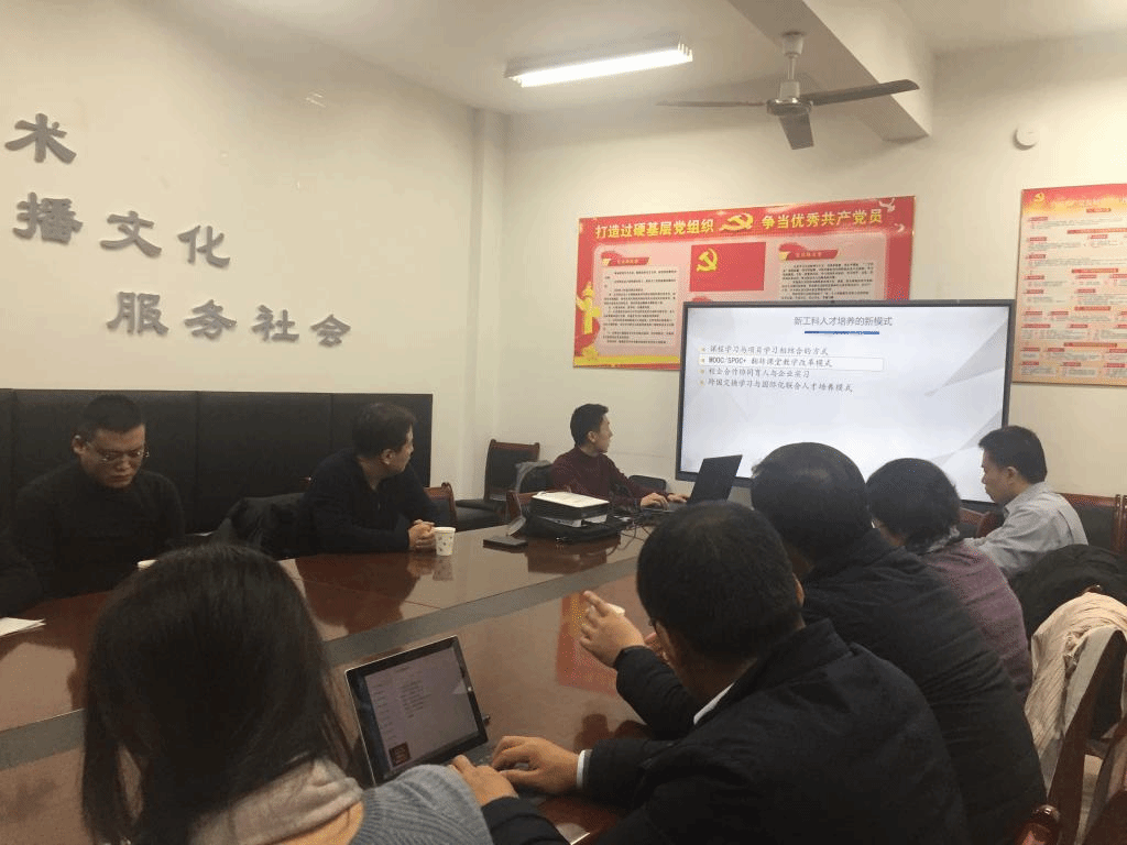山东新视觉数码科技有限公司董事长王铁兵高度赞同学院面向新文科建设提出的新构想,结合公司近些年的校企合作内容与老师们详细介绍国家教育部产学合作协同育人的政策导向和项目实施情况。公司软件开发部的技术工程师现场演示企业开发的支持金课建设的“云课堂”平台,并就“智慧校园云”与公司“云课堂”的无缝嵌入融合,学院、学校、企业共同构建一个“面向新文科建设的智慧实践教学云平台”展开了深入而热烈的讨论。