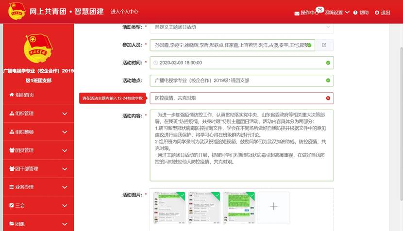 自新型冠状病毒疫情发生以来,文化传播学院高度重视疫情防控工作,积极响应贯彻团中央及团省委相关要求,严格落实学校党委、团委相关部署安排。为更好地引导广大同学积极抗击疫情,锤炼道德品行,努力提升自我,2月3日起,文化传播学院积极组织开展“防控疫情,共克时艰”线上特别主题团日活动。