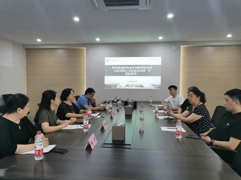 6月30日下午,济南商务局陈萍研究员、山东星探传媒有限公司赵焱总经理等一行四人来到我校考察交流。文化传播院长刘绍芹、党总支书记王连峰等热情接待,外国语学院副院长管秀兰、舞蹈学院副院长杨倩同时参加了接待交流活动。