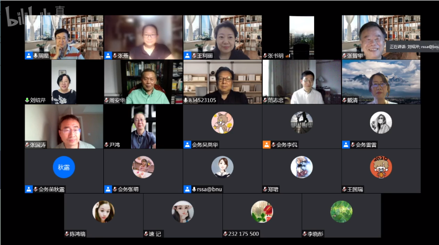 在开幕式环节,刘绍芹院长介绍了参与本次活动的领导和专家,随后山东青年政治学院校长张书明教授致欢迎辞并对学校情况做了简要介绍。山东青年政治学院坚持应用型的办学定位,取得了一系列的成果;文化传播学院摸索出的学科渗透、专业协同、能力整合、实践联动的融合式发展,在新文科建设方面迈出了可喜的一步;播音专业的实践育人卓有成效,主动对接行业、产业,融入产业发展,谋求更好更快发展。教育部高校戏剧与影视学类专业教学指导委员会主任、北京师范大学中国艺术教育研究中心主任周星教授致辞,就本次学术沙龙做了简单说明。戏剧与影视学类专业教指委举办“审美与向善:艺术名师大讲堂系列讲座”的背景是我国抗击新冠肺炎疫情已经取得了决定性的胜利。本次沙龙所讨论的电视剧、网络剧是与中国老百姓生活联系最密切的视听对象。在时代变迁中,剧、网之间的相融关系、互补关系引起了众多专家的思考。因此,戏剧与影视学类专业教指委组织了本次学术沙龙。随后参加本次讲座的领导和专家进行了“云合影”。