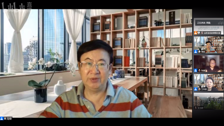 互动对话环节,会务组整理了直播过程中师生提出的问题,分别向尹鸿教授、张国涛研究员等提问,几位教授都进行了耐心细致的解答。现场气氛热烈,会议延长了将近一小时才结束。会议最后,北京师范大学中国艺术教育研究中心主任周星教授做学术总结,并对本次活动的主办单位山东青年政治学院表示了感谢。