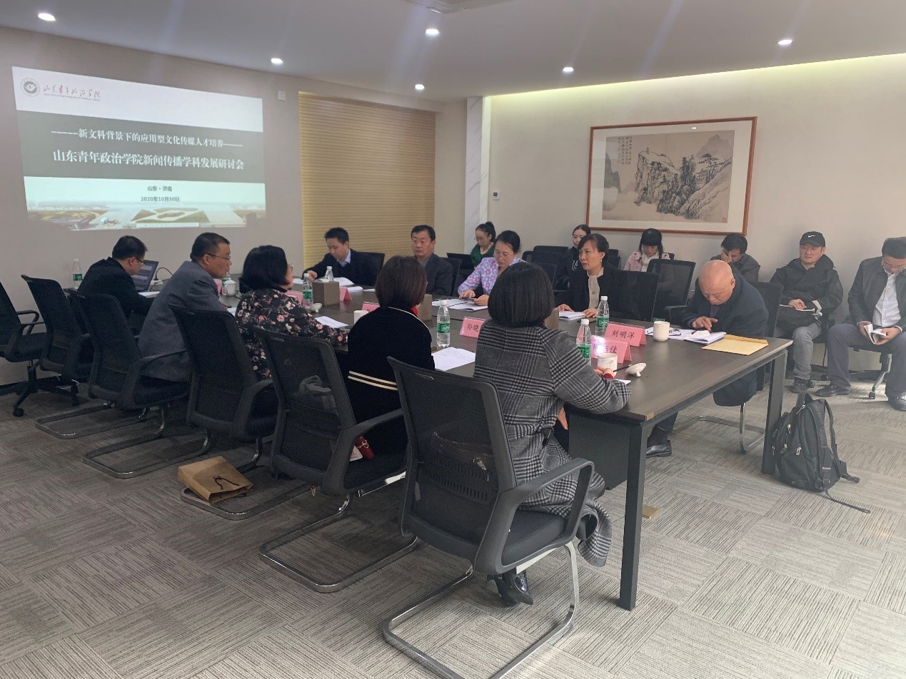 10月30日上午,我校广播电视学专业以新文科背景下的应用型文化传媒人才培养为主题,邀请国内新闻传播学界知名专家学者来校参与专业发展研讨会。清华大学新闻与传播学院常务副院长陈昌凤教授,河北大学新闻传播学院院长韩立新教授,辽宁大学新闻与传播学院院长程丽红教授,华中科技大学新闻与信息传播学院院长张明新教授,山东大学新闻传播学院常务副院长刘明洋教授应邀出席本次研讨会。文化传播学院院长刘绍芹教授主持会议,广播电视学专业全体教师参与了本次研讨。