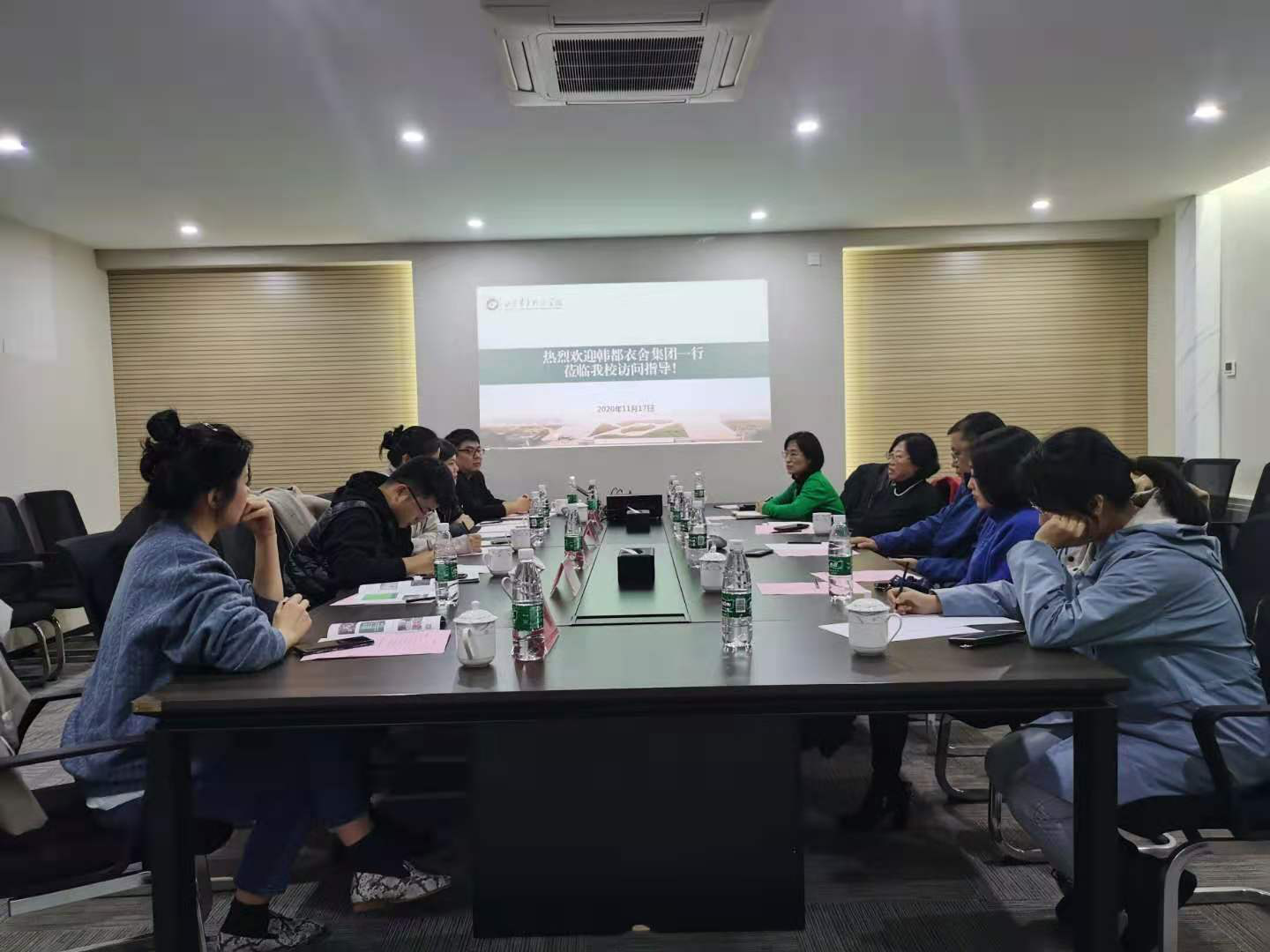 11月17日,韩都衣舍智汇蓝海副总、政府事务部总监陈新等一行6人来到文化传播学院进行项目考察和交流,文化传播学院院长刘绍芹、党总支书记王连峰、副院长孙晓彦及相关专业教师参加座谈。