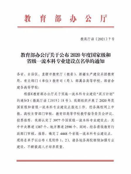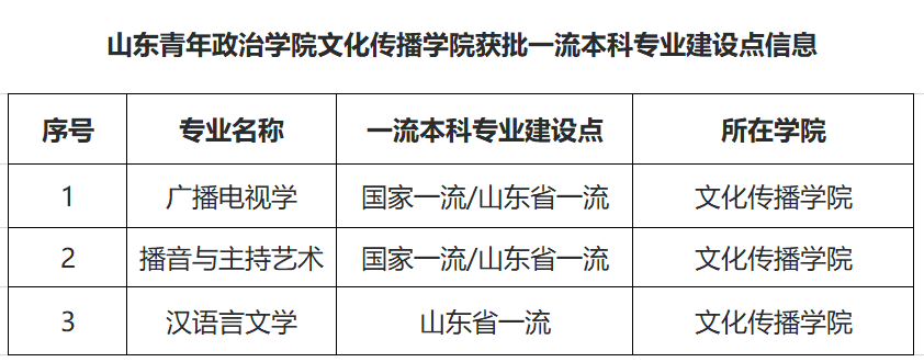 近日,《教育部办公厅关于公布2020年度国家级和省级一流本科专业建设点名单的通知》(教高厅函[2021]7号)正式公布了2020年度一流本科专业建设点名单,我院广播电视学、播音与主持艺术两个专业获批国家级一流本科专业建设点。这是继广播电视学、播音与主持艺术、汉语言文学三个专业获批2019年度山东省一流本科专业建设点之后又一专业建设成果的重大突破。