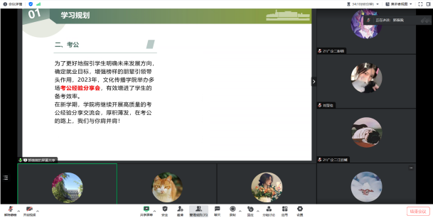各班班主任主要围绕新学期校园安全教育、学业规划、日常事务管理、校纪校规、传染病预防、心理健康等方面进行讲述,着重强调校园安全问题,通过对电信诈骗、寝室安全、交通安全等真实案例剖析,帮助学生强化安全意识,提高防诈能力。此外,学院教师还表达了对学生新学期的殷切期望,鼓励学生尽快调整状态、找准目标,投身于新学期的学习生活。