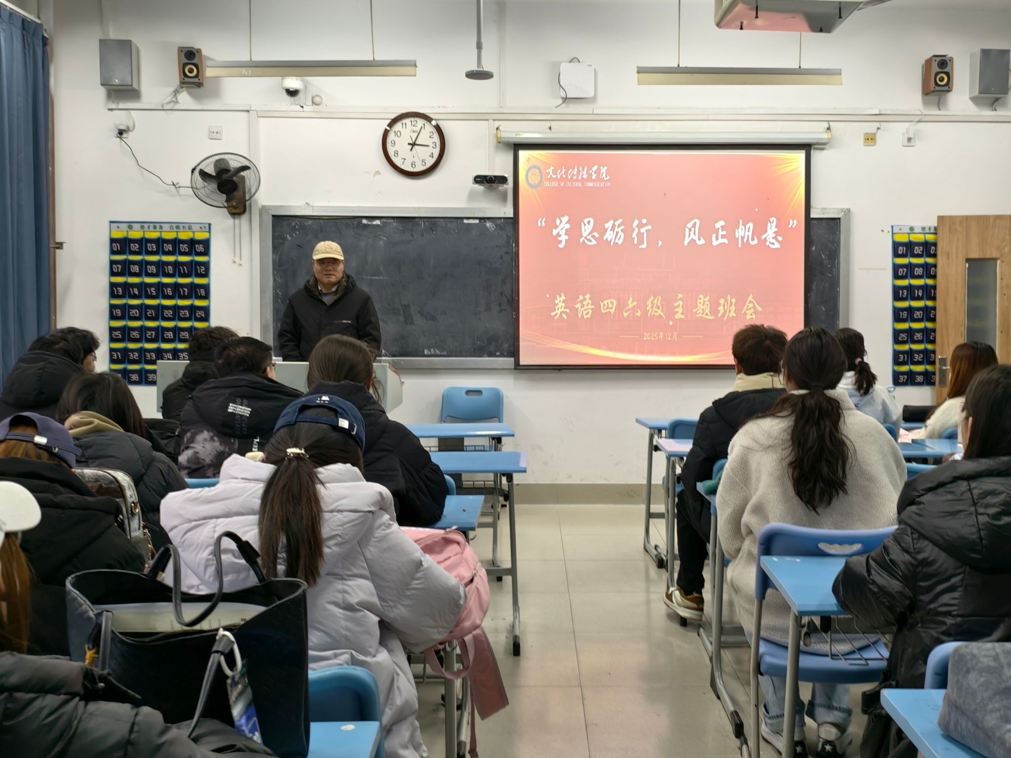 为进一步强化学风建设,筑牢学生诚信应考思想根基,营造公平公正的考试氛围,12月8日至12月12日,文化传播学院各班级陆续开展四六级暨期末诚信考试主题班会,各班班主任、辅导员到场指导。