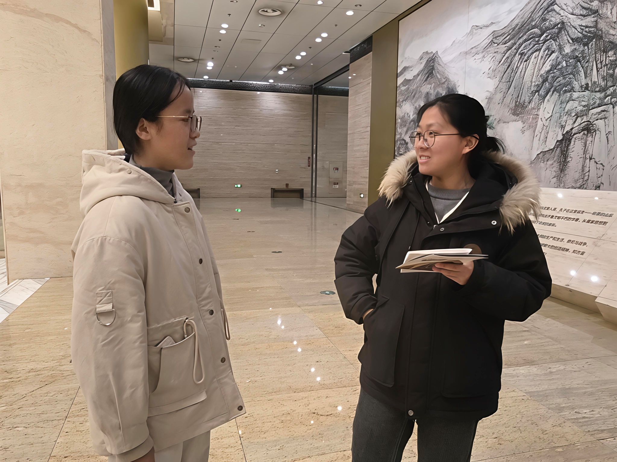 社会实践当天,团队先后访问海岱日新展、数智文化展厅、山东汉画像石艺术展等多个展览,与不同年龄、不同职业的游客展开深度对话,询问游客对展厅内数字展项里AR/VR互动、沉浸式投影的体验感受。团队成员通过一对一访谈的形式,收集了不同人群对于中华文化的不同理解与创新体验的反馈,为探寻文化创新的路径奠定了坚实的基础。