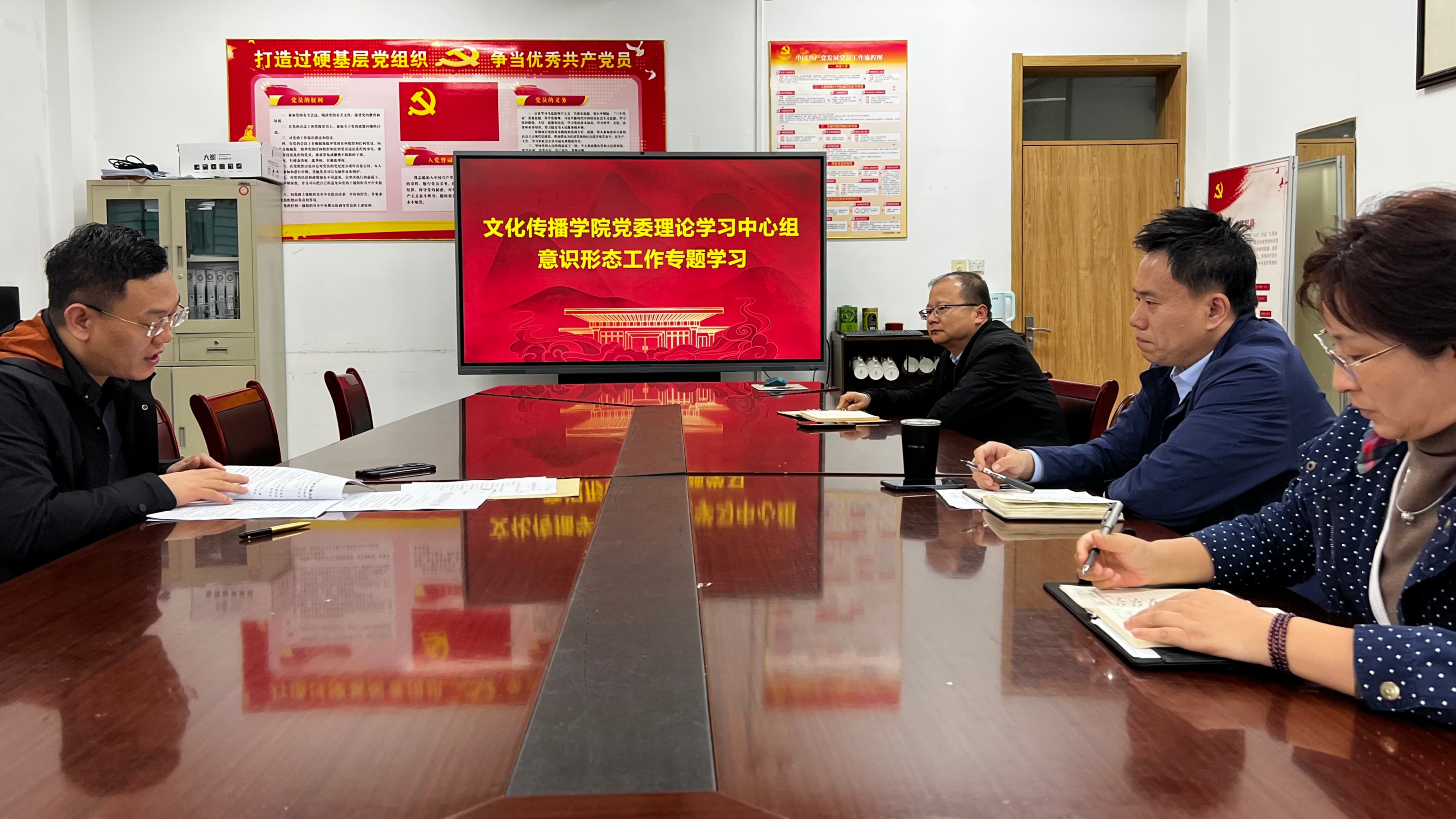 10月16日,文化传播学院党委理论学习中心组开展意识形态专题学习,深入学习习近平总书记关于意识形态工作的重要论述。学院党委书记杜兴东领学,理论学习中心组全体成员参加学习。